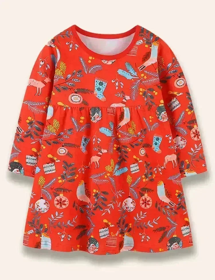فستان مطبوع عليه طائر الرنة لعيد الميلاد