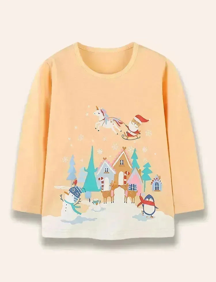 تي شيرت مطبوع عليه عيد الميلاد سنو فريند بأكمام طويلة