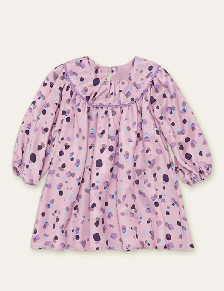 فستان بولكا دوت مطبوع بأكمام طويلة