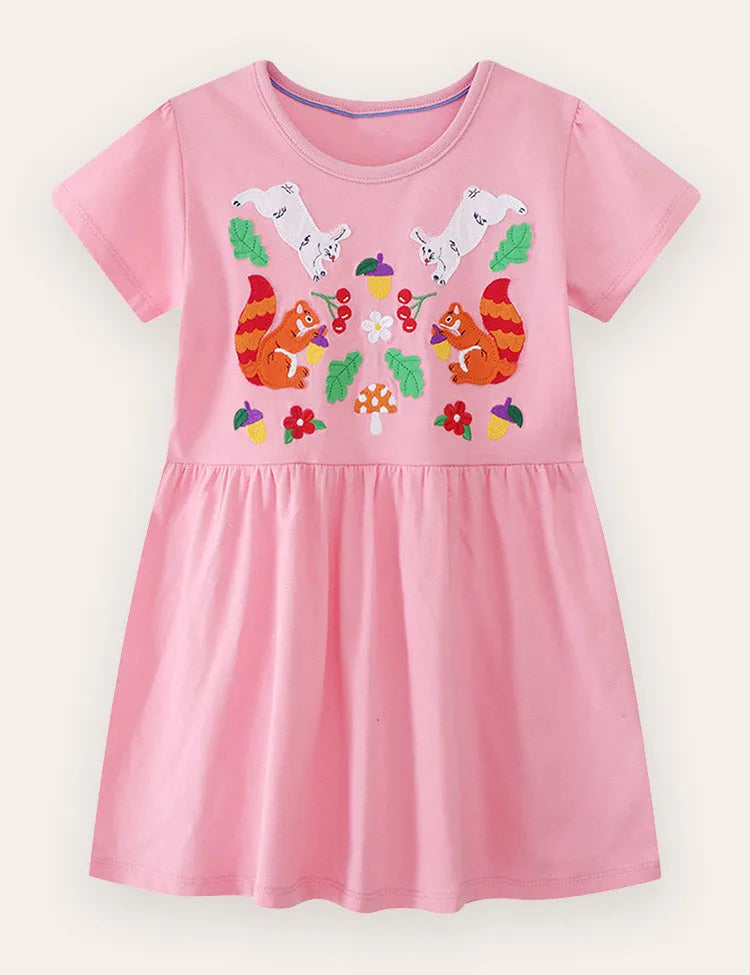 Cute Animal Appliqué Cotton Dress