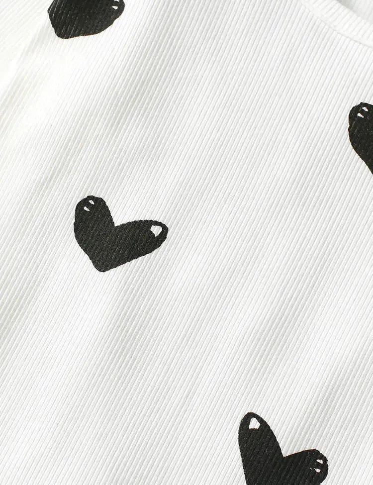 طقم تي شيرت بأكمام طويلة وطبعة قلب