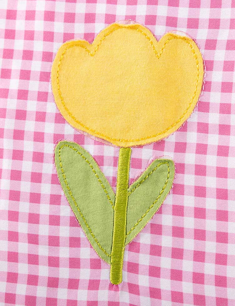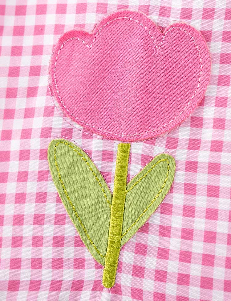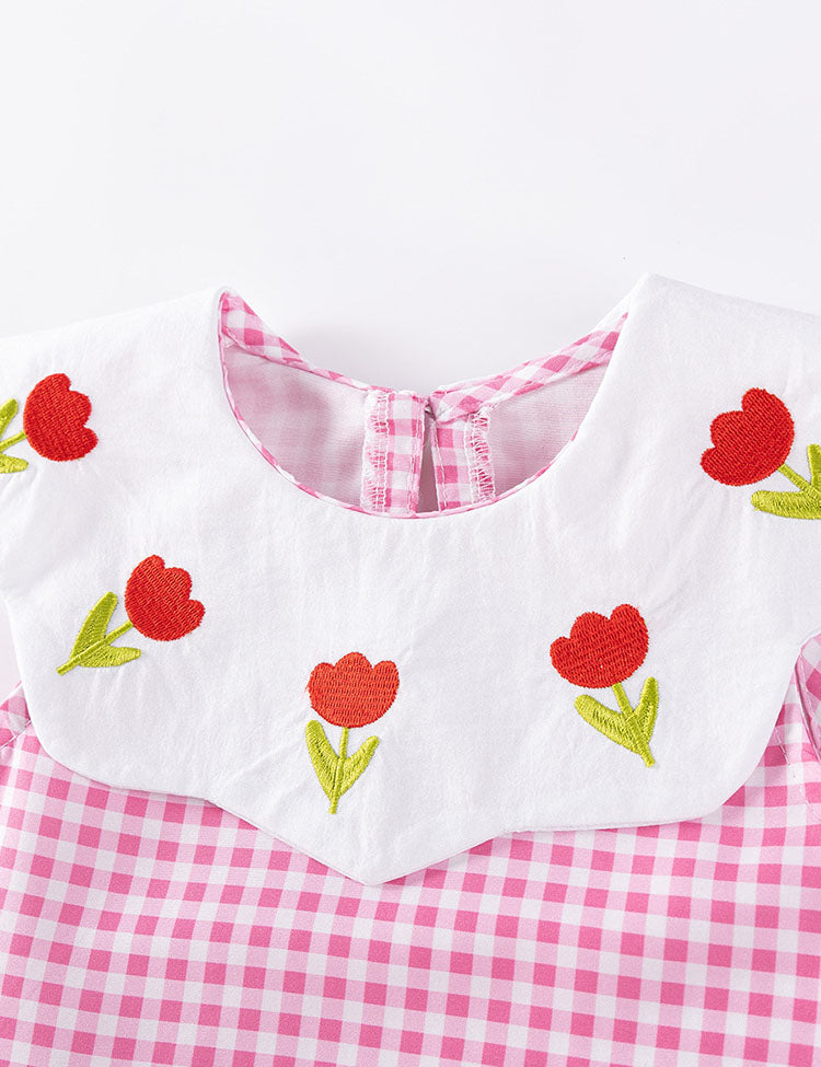 Flower Embroidered Plaid Dress