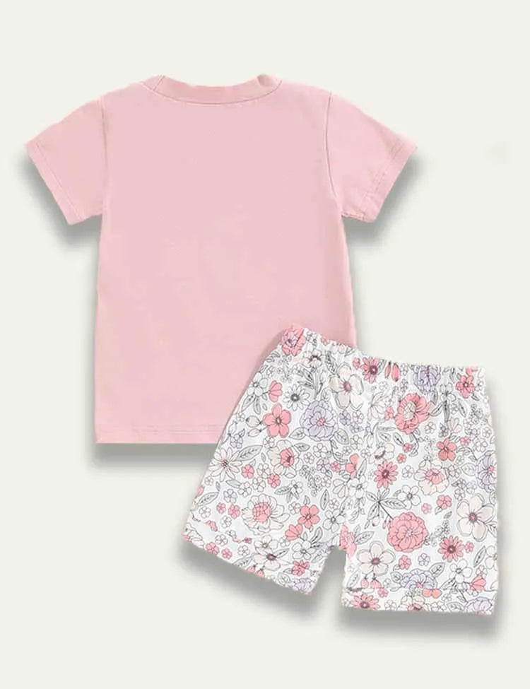 Easter Bunny Printed T-Shirt+Floral Shorts