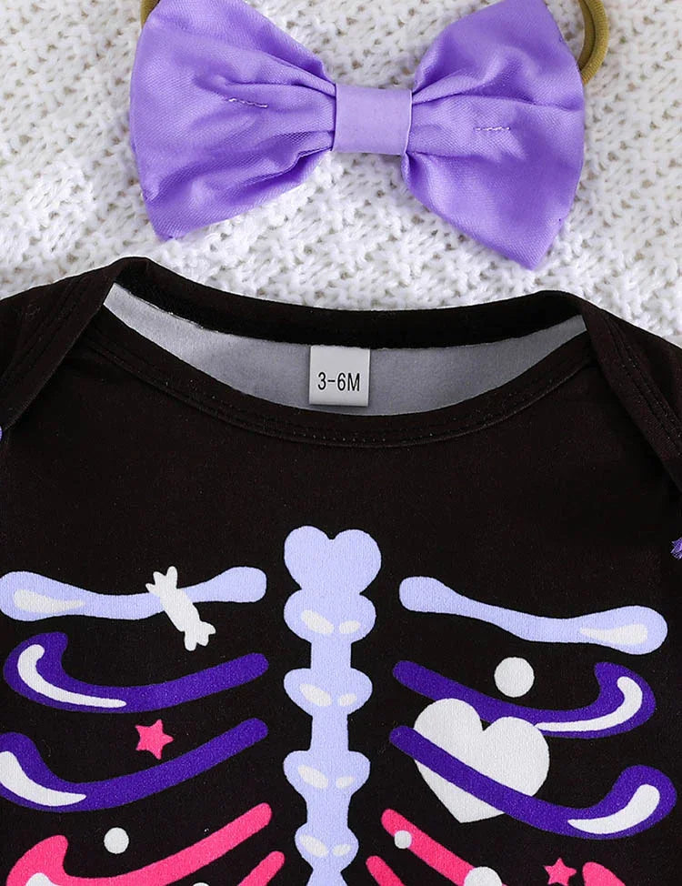 Halloween Color Skeleton Romper + Headband+ Tulle Skirt Three-piece Set