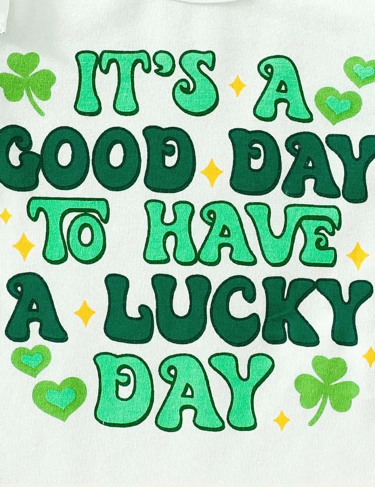 St. Patrick's Day Letter Printed Romper+Lucky Strap Dress