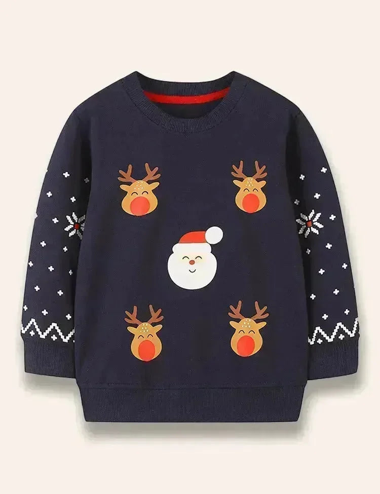 Christmas Santa Claus&Reindeer Printed Sweatshirt