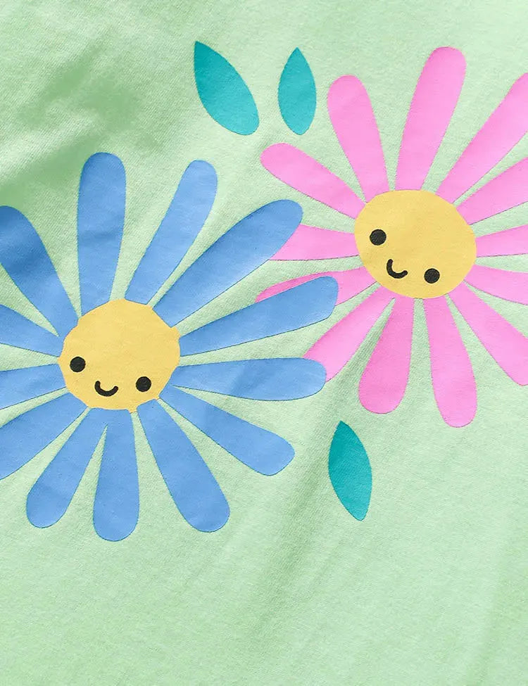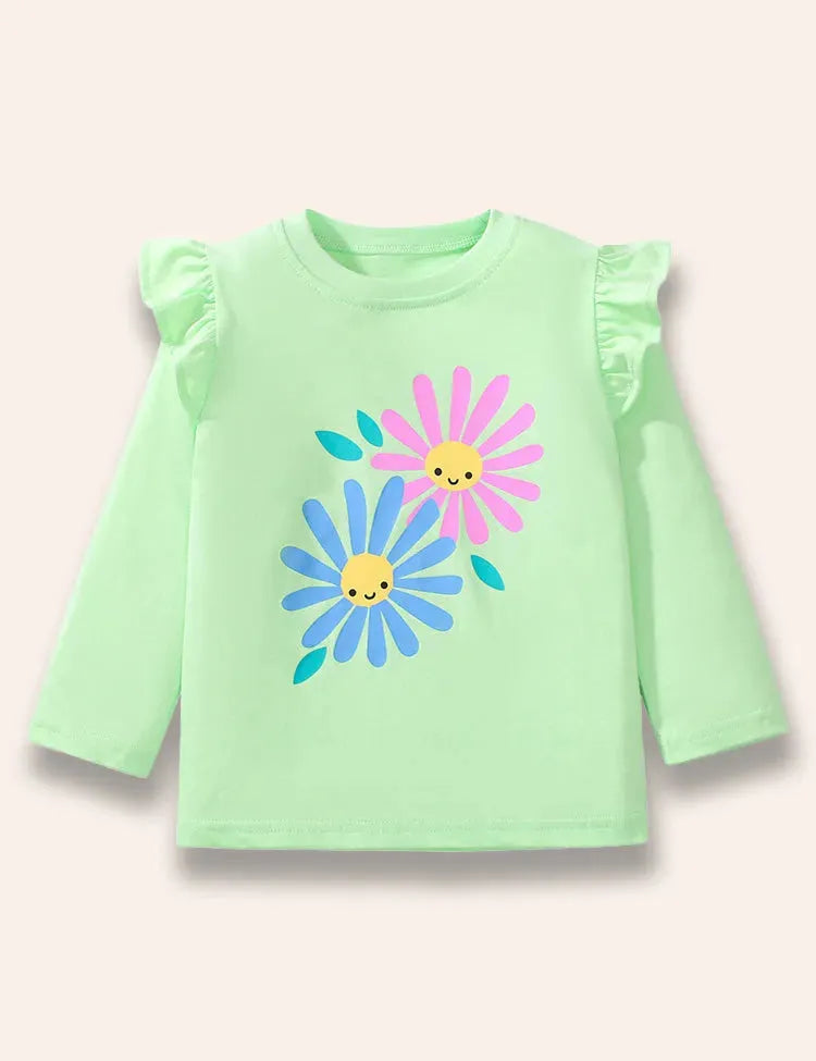 Cartoon Daisy Printed Long Sleeve Ruffled T-Shirt