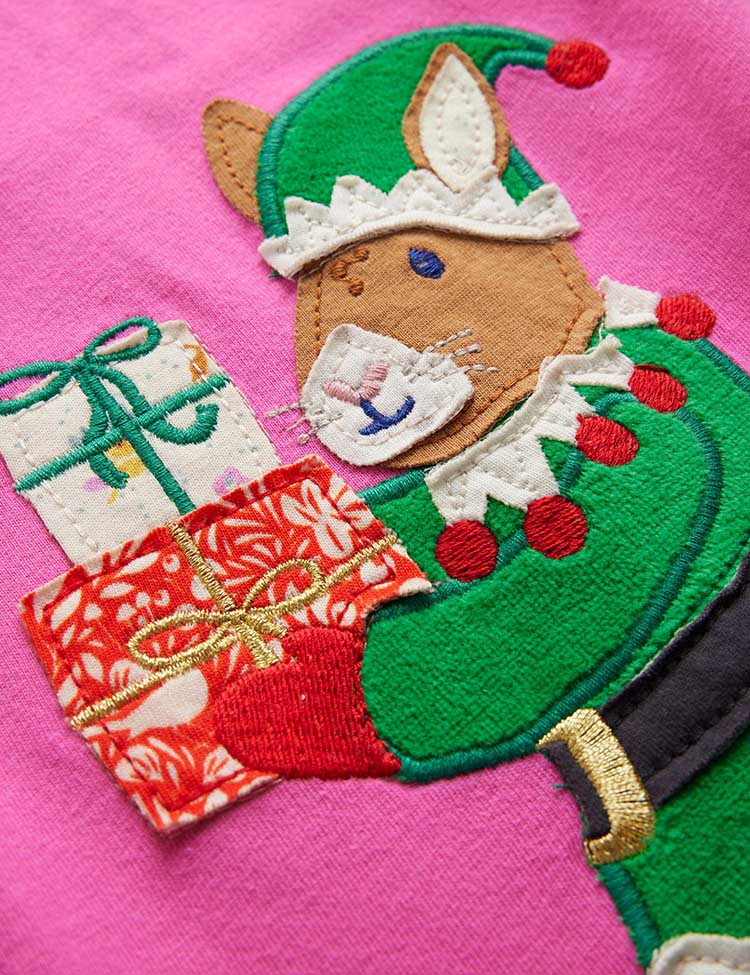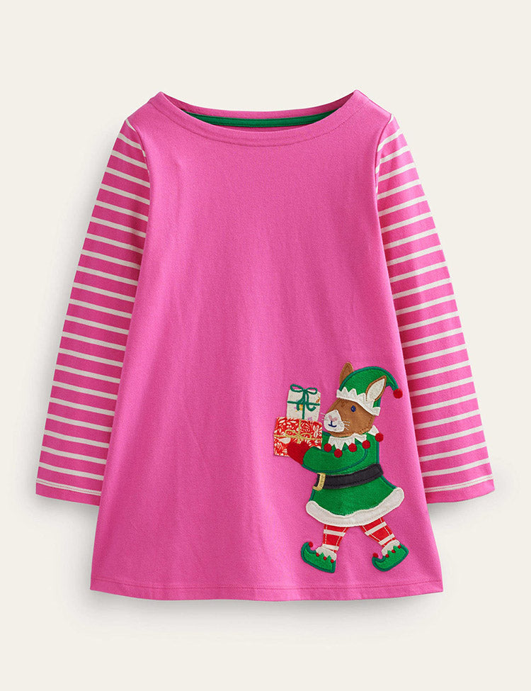 Christmas Guinea Pig Applique Long Sleeves Dress