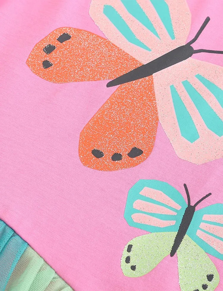 Shining Butterfly Printed Rainbow Tulle Dress