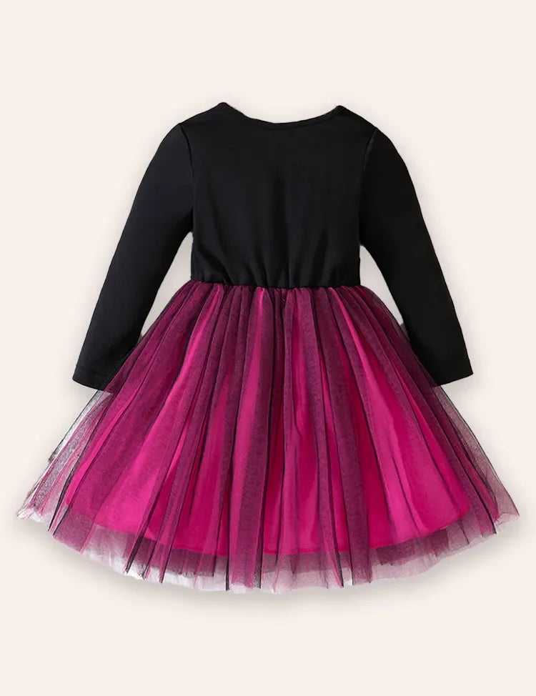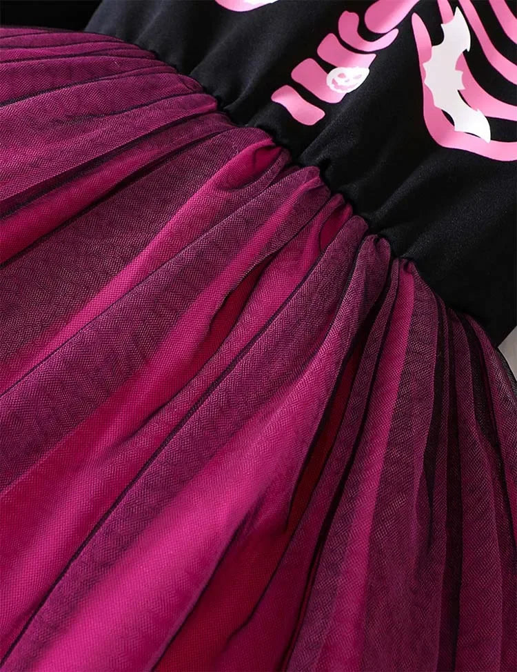Halloween Skeleton Print Mesh Long Sleeve Dress