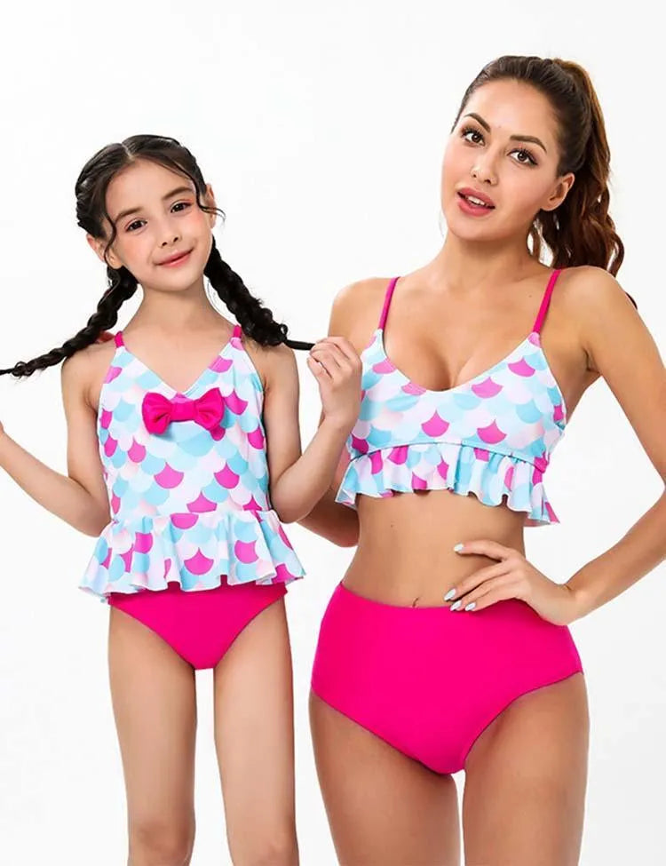 Mermaid Bow High Waisted Family Matching Swim Suit
