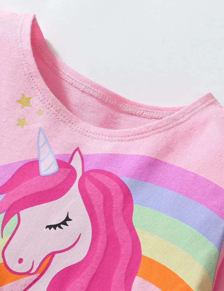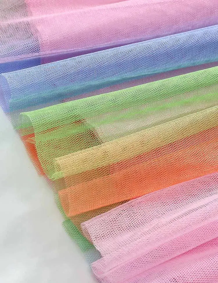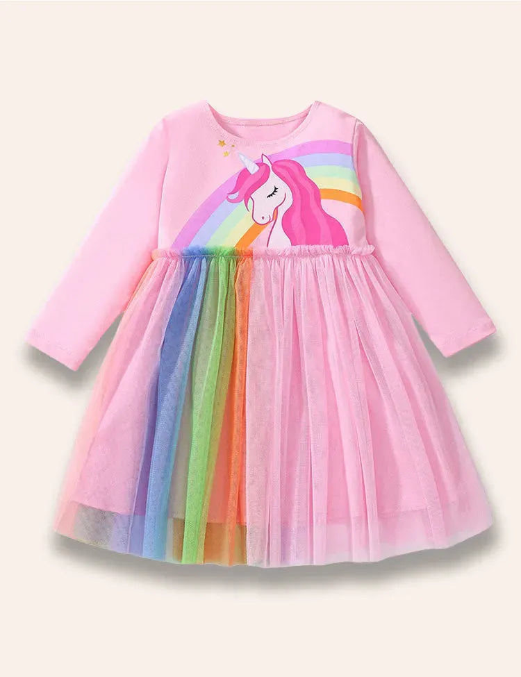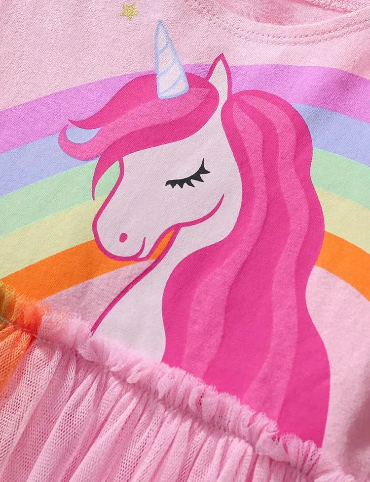 Cartoon Rainbow Unicorn Printed Tulle Dress
