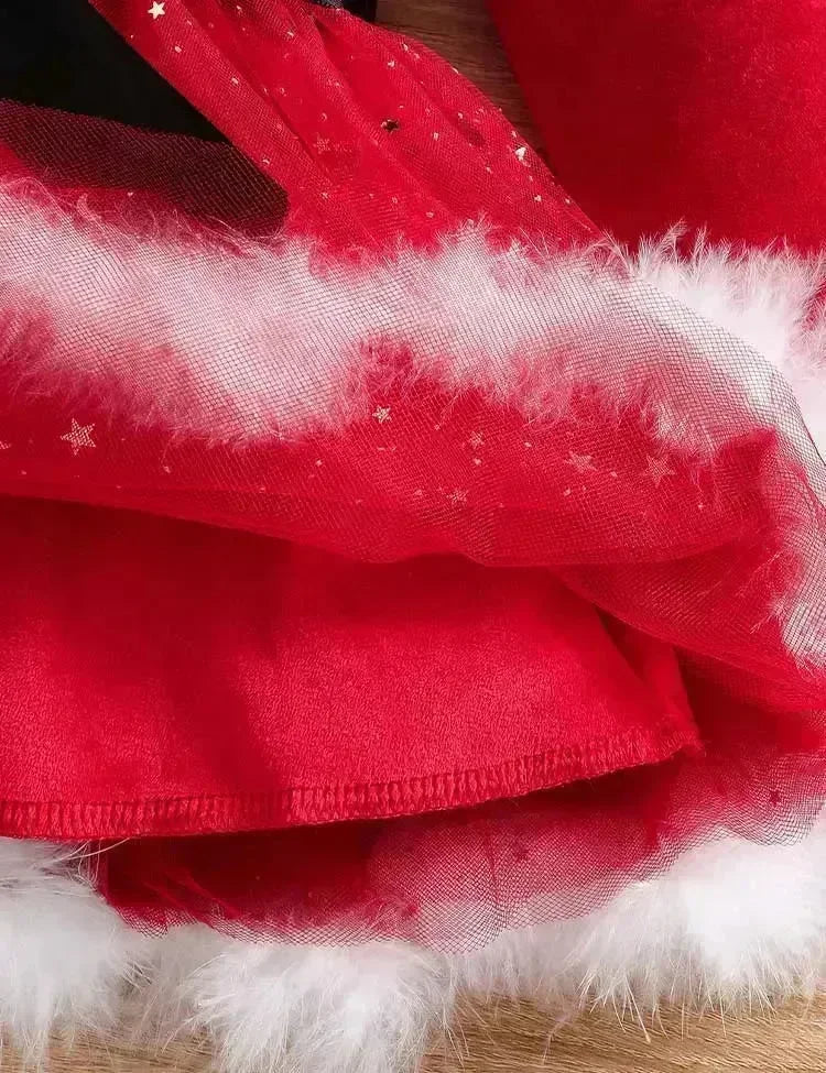 Christmas Long Sleeve Star Tulle Party Dress Set