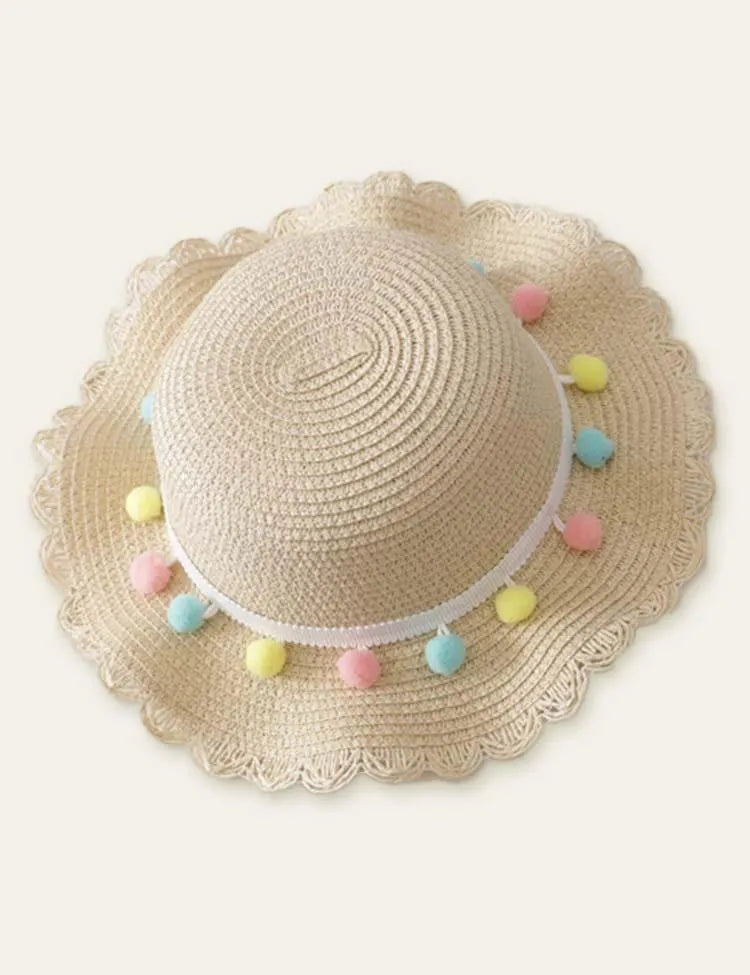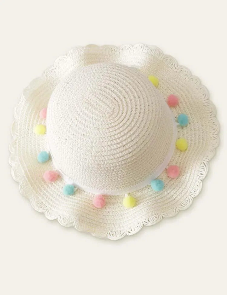 Color Fur Ball Vacation Straw Hat