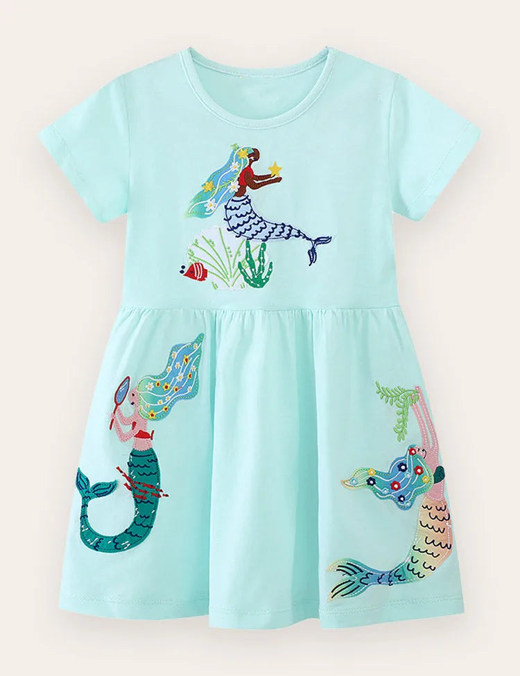 Mermaid Embroidered Cotton Dress