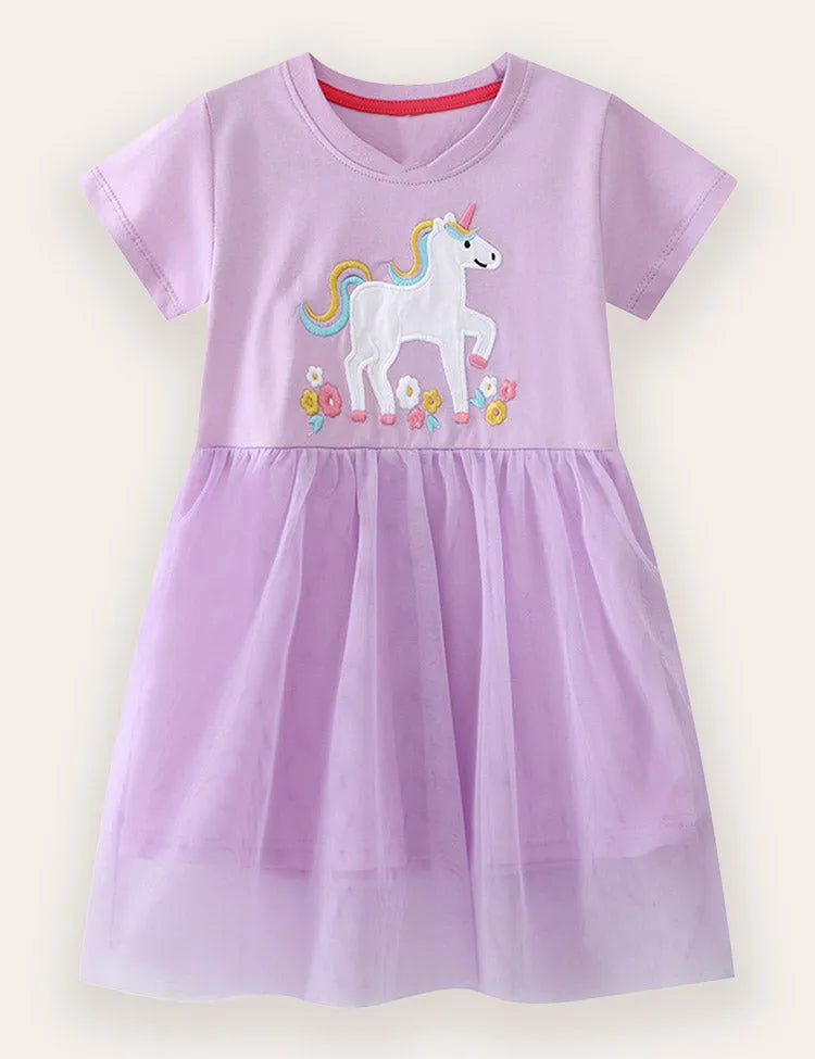 Unicorn Appliqué Cotton Tulle Dress