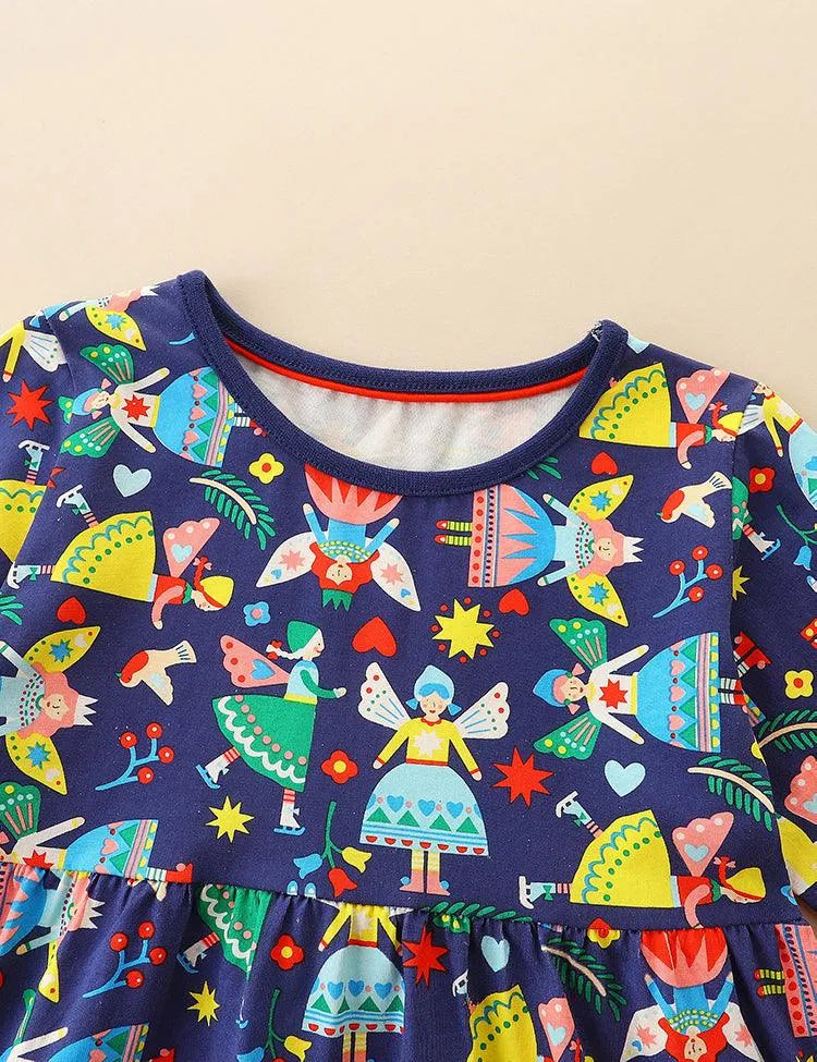 Butterfly Girl Floral Printed Long Sleeve Dress
