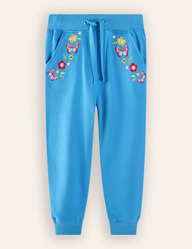 Butterfly Flower Embroidered Sweatpants