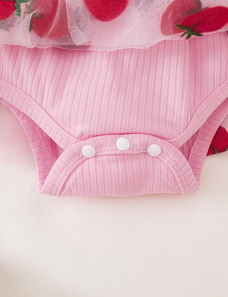 Strawberry Embroidered Tulle Cute Overall