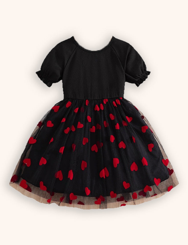 Valentine‘s Day Heart Print Tulle Dress