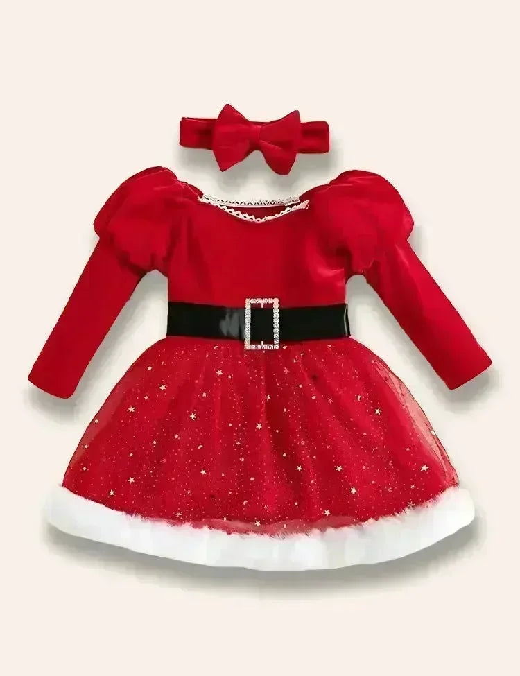 Christmas Starry Tulle Party Dress+Bow Headband