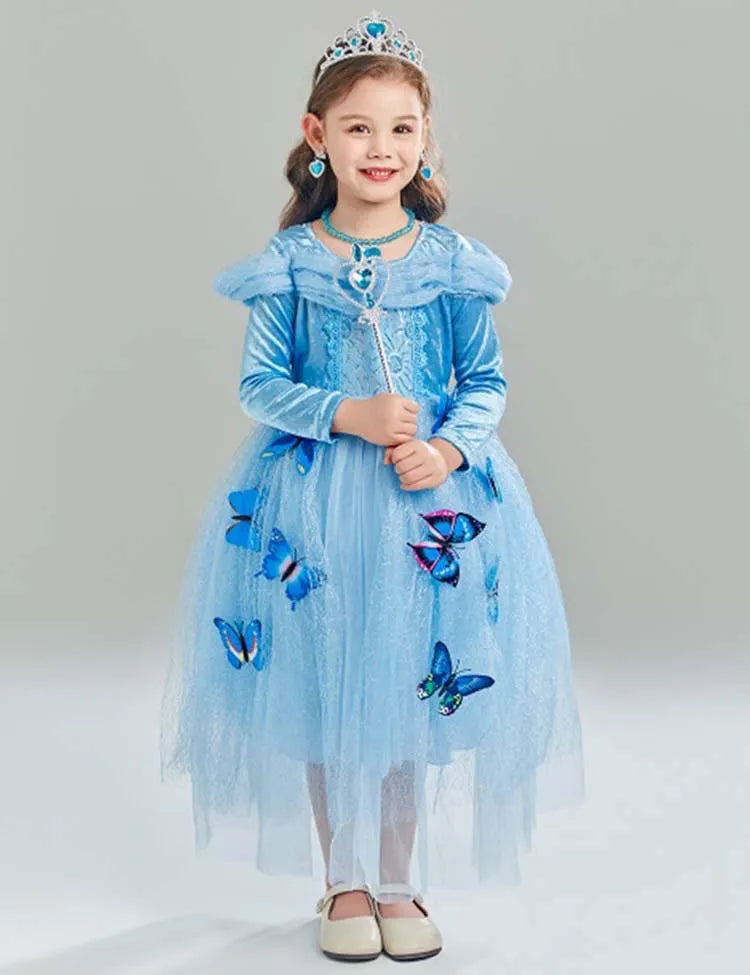 Frozen Elsa Princess Butterfly Mesh Dress