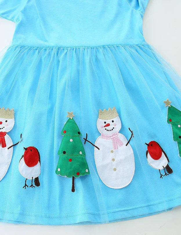 Snow Christams Tree Applique Tulle Dress