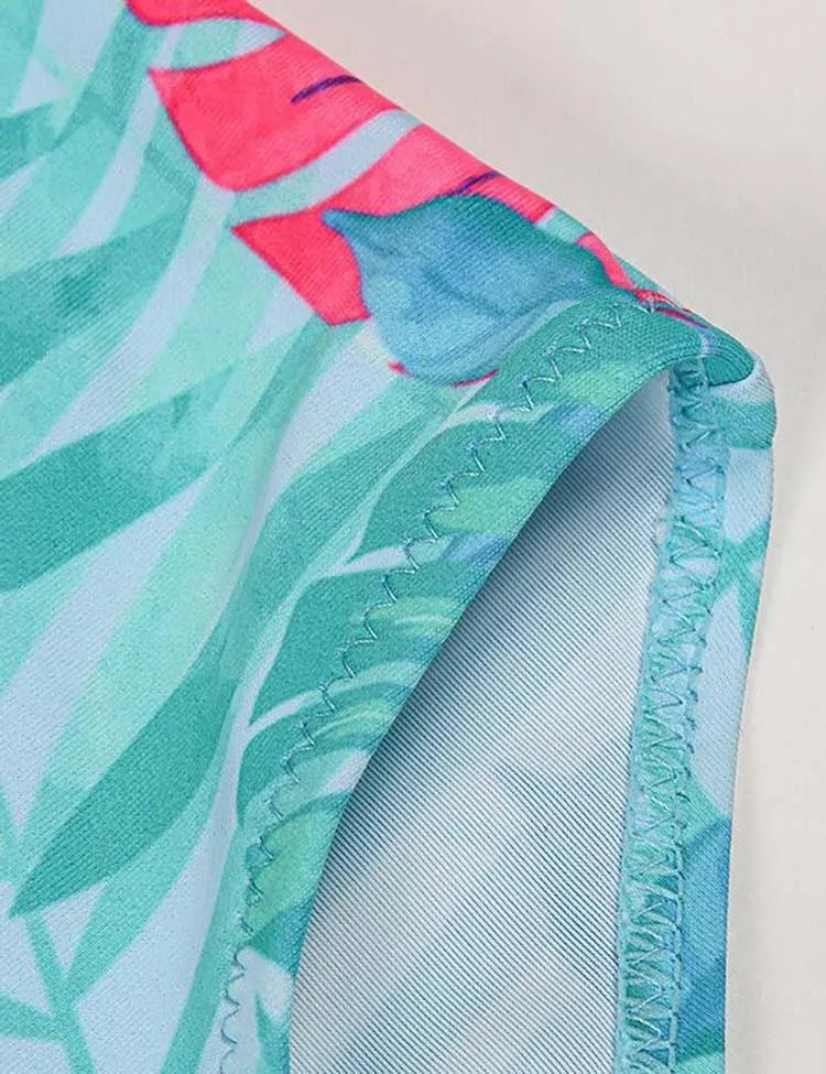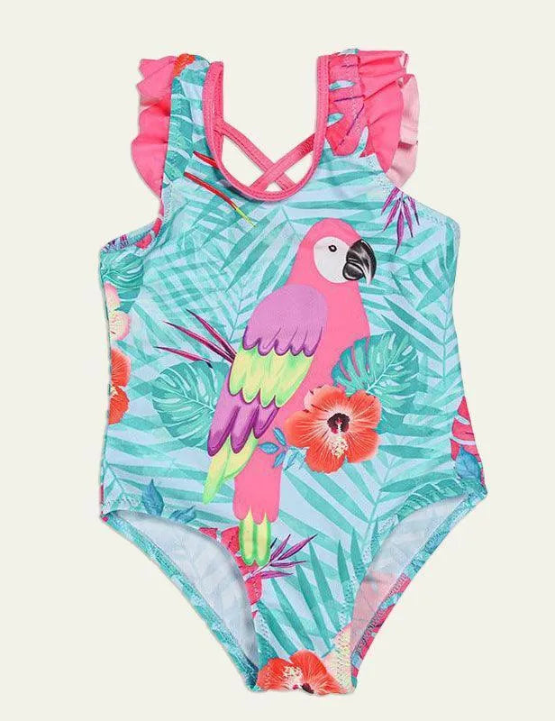 Parrot Cartoon Lotus Leaf Sleeve One Piece Swimsuit