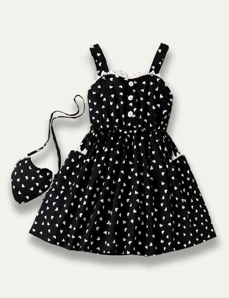 Heart Printed Lace Strap Dress