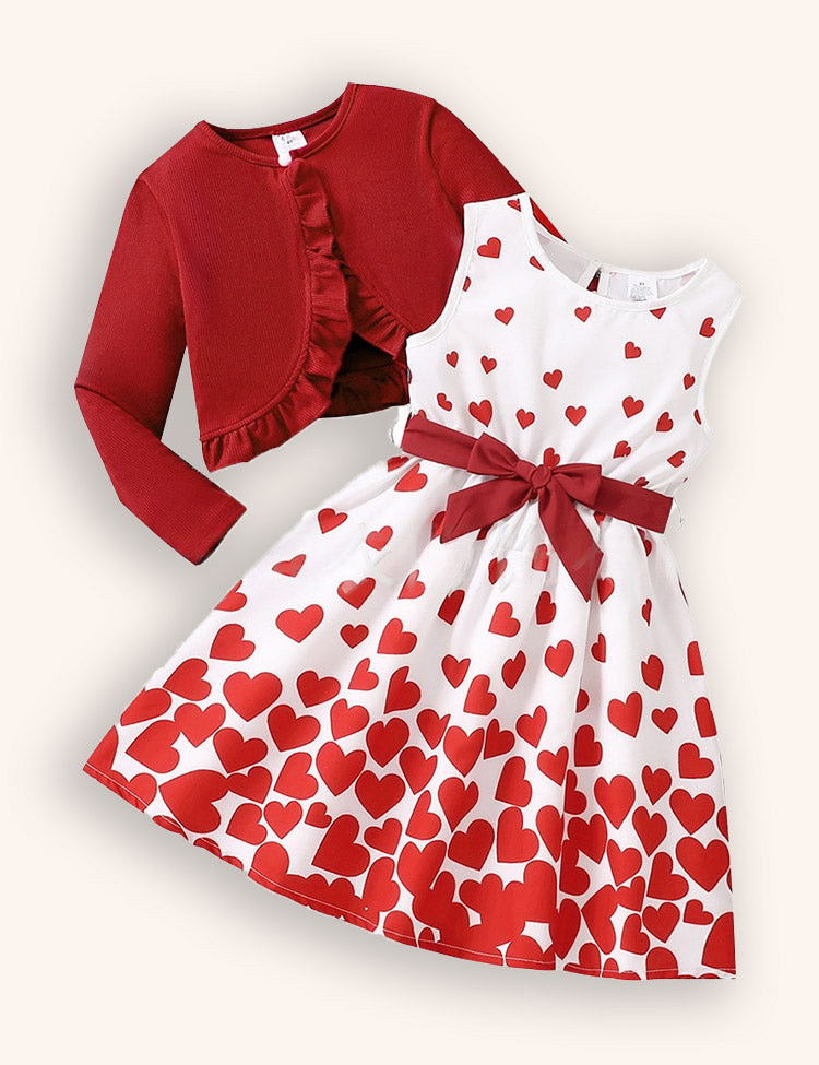 Valentine's Day Love Print Dress + Knitted Jacket